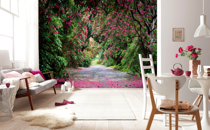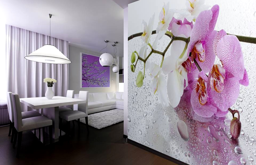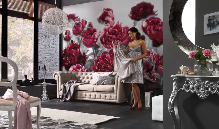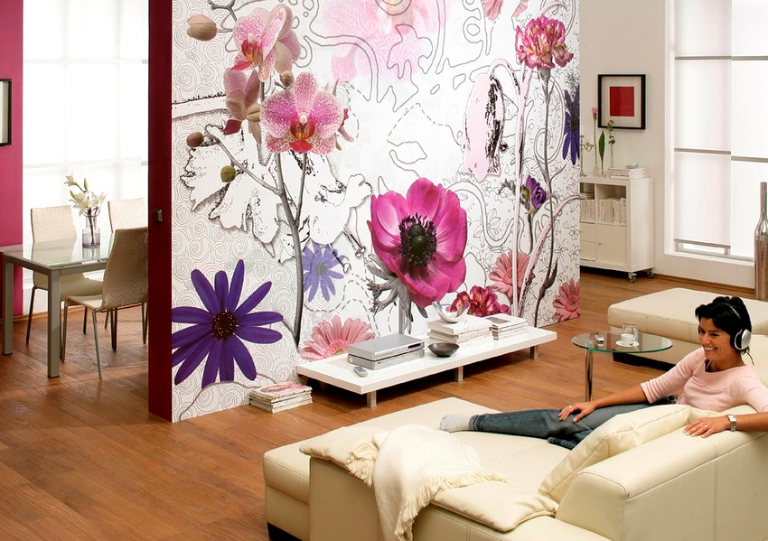 С помощта на изображения на цветя можете лесно да създадете най-разнообразна атмосфера в къща или апартамент. Например, пастелни цветове под формата на орхидейни пъпки, кремави рози или розова сакура ще добавят нежност и лекота към интериора. Друг плюс на флоралните мотиви е тяхната гъвкавост, тъй като те са подходящи за дизайна на различни помещения, като хол, детска стая, спалня или коридор.