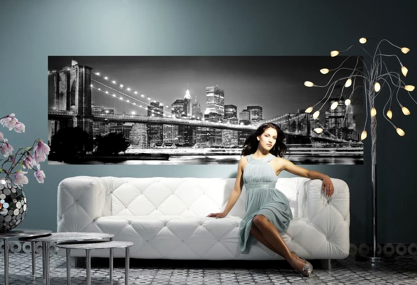 За да създадете успешен дизайн в една стая, е важно не само да изберете снимка на фототапет, но и да вземете предвид тяхната съвместимост с мебели, елементи от декора и функционалната цел на стаята. И също така трябва да вземете решение за местоположението на фототапета. Препоръчително е да подредите интериор с ярки мебели и декоративни елементи в черно-бели снимки.