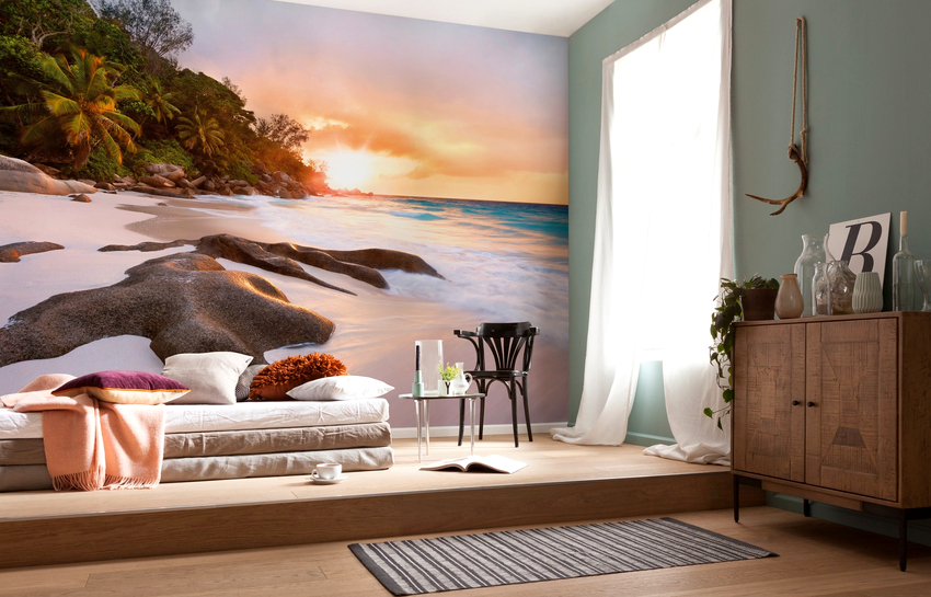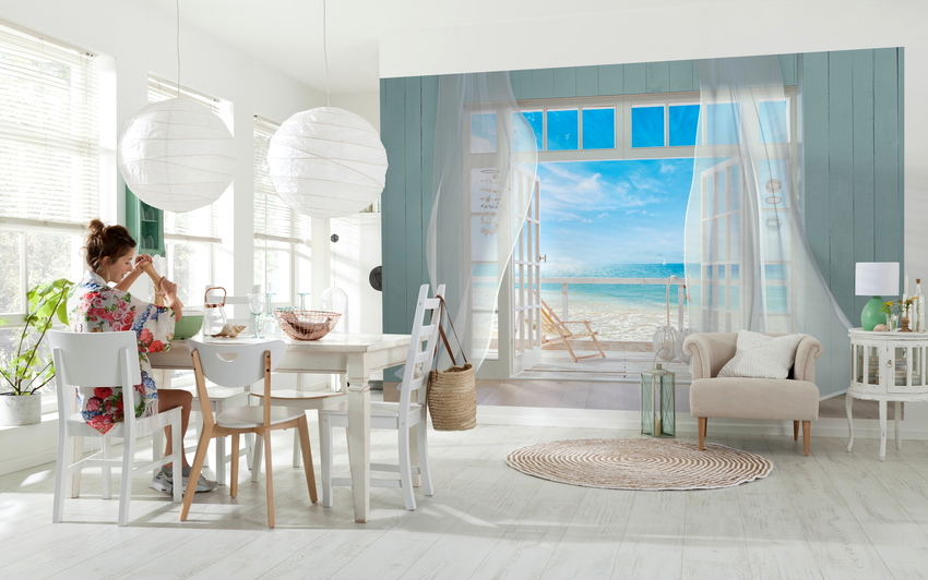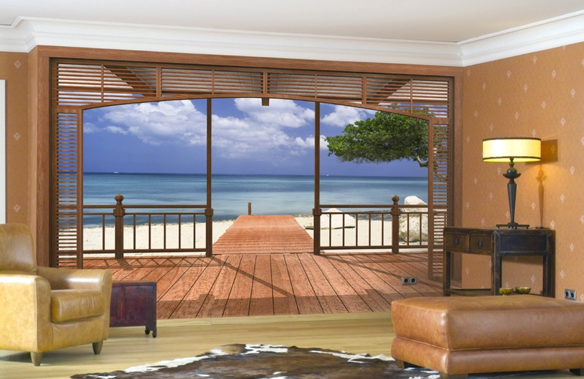 Фотоморалите с морска тематика под формата на плажове с палми и лодки са подходящи за декориране на спални и детски стаи. В хола, направен в минималистичен стил, снимка с изглед към океана ще изглежда страхотно, а в стая за деца - морето с пиратски кораб или изображение на подводния свят.
