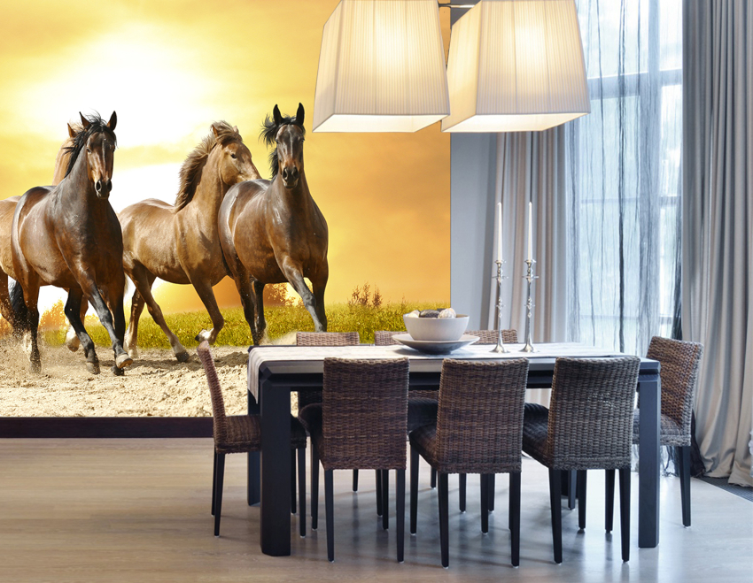 Фотоморалите, изобразяващи животни, ще създадат уютна атмосфера, изпълвайки интериора с ярки цветове, положителни емоции и енергията на природата, подчертавайки умело стилистичната ориентация в дизайна на стаята. Съвременните производители предлагат най-широк избор от динамични сцени и цветове. Такива цветни и динамични картини ще преобразят и най-тъмната стая.