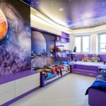Полезен съвет! Платната с космическа тематика, при производството на които са използвани светещи в тъмното бои, изглеждат най-изгодни, особено що се отнася до декорирането на тавана.