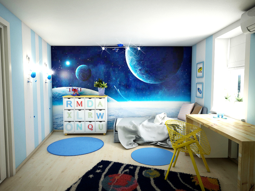 - космическите и научните теми също са подходящи за стаята на малките изобретатели;