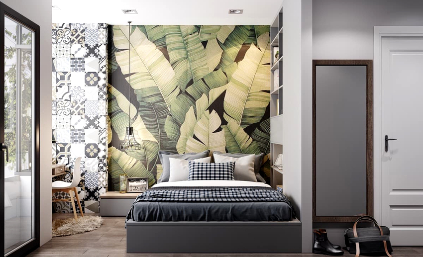 - тапет със светъл шаблон, поставен на най-голямата стена;