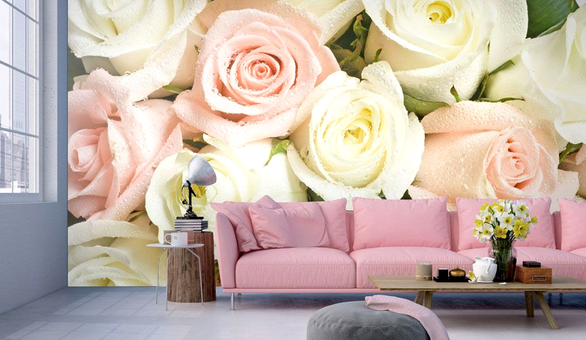 Сред флоралните щампи специално място заемат тапетите с изображение на рози. Те се вписват в интериори от различни стилове. Те изглеждат интересно в класически, минимализъм, модерен и дори хай-тек стил. Такива картини са подходящи за романтични натури, тъй като самото цвете олицетворява красота, нежност, страст и любов. Освен това розите за тапети в интериора са в перфектна хармония с различни цветови схеми, демонстрирайки успешна игра на контрасти.
