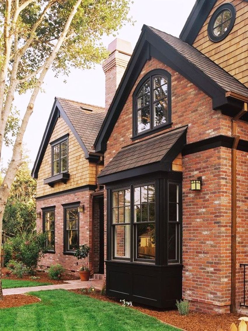Красивата тухлена зидария може да комбинира два нюанса (например червен и кафяв). Къщите в европейски стил имат малки правоъгълни прозорци. Горната част на отвора на прозореца е загладена. Препоръчително е да изберете врати и прозорци, така че сянката им да контрастира с цвета на сградата.