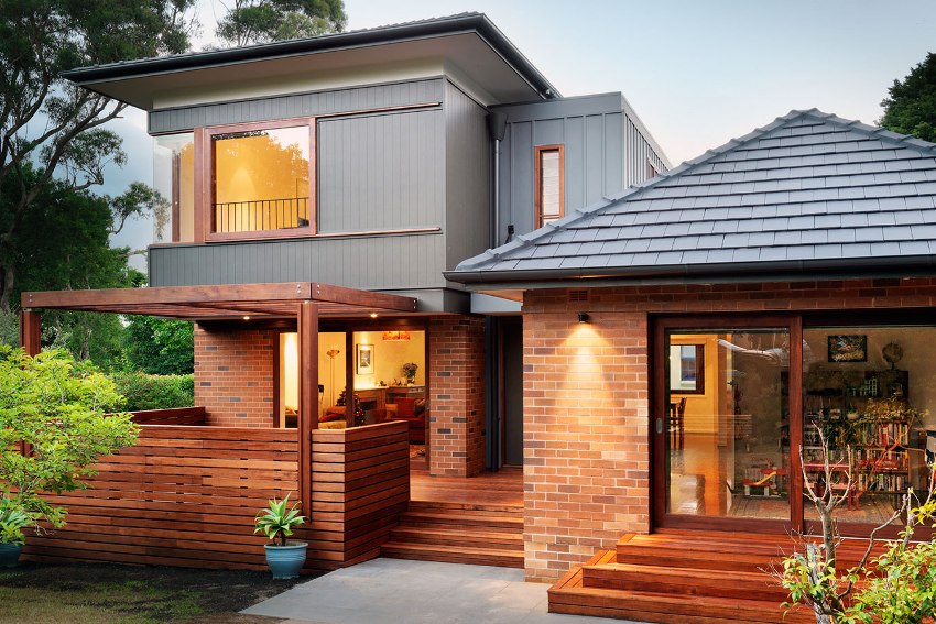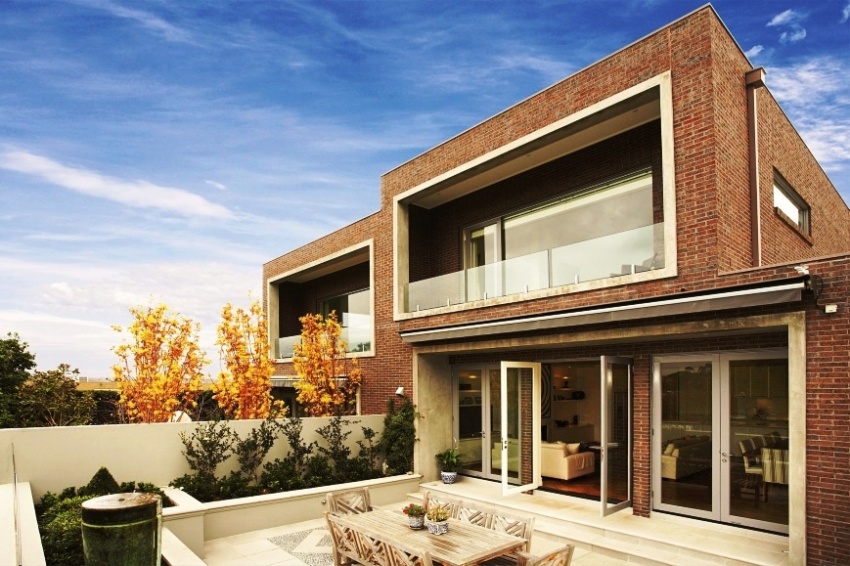 Фасада на тухлена къща с тераса: предимствата на подобно оформление