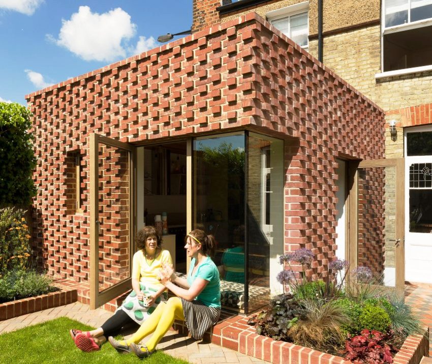 Къщите от тухли могат да имат тераса. Това е приложение, разположено на повдигната основа и представлява открита или затворена зона. Тази опция е идеална за двойки с деца. Терасата може да бъде изпълнена с мебели и пригодена да бъде място за отдих за обедни почивки и срещи с приятели.