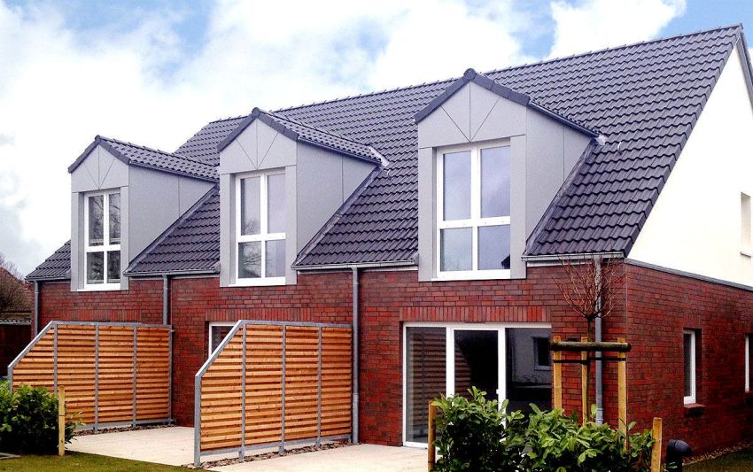 Такива сгради най-често имат цокъл, за облицовка на който използват керамични плочки или камък. Покривът на къща, направена по европейски модел, е два вида: