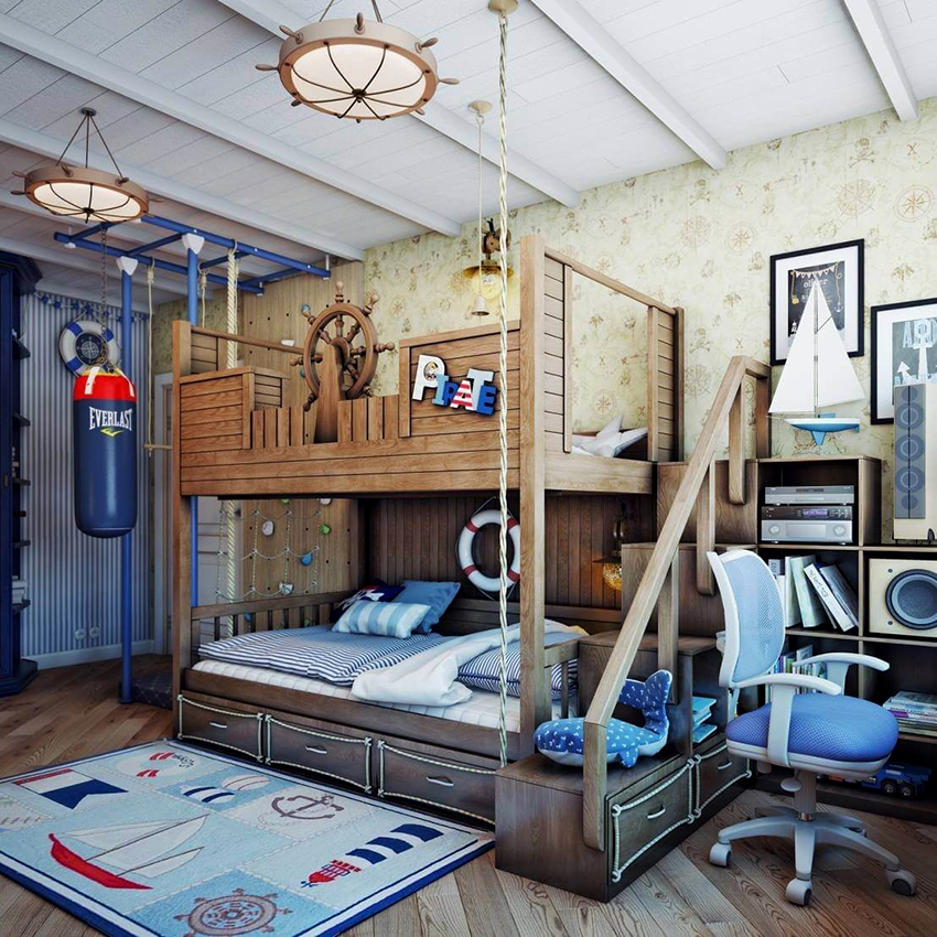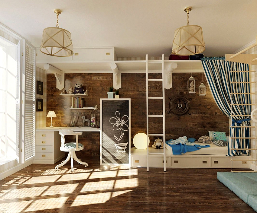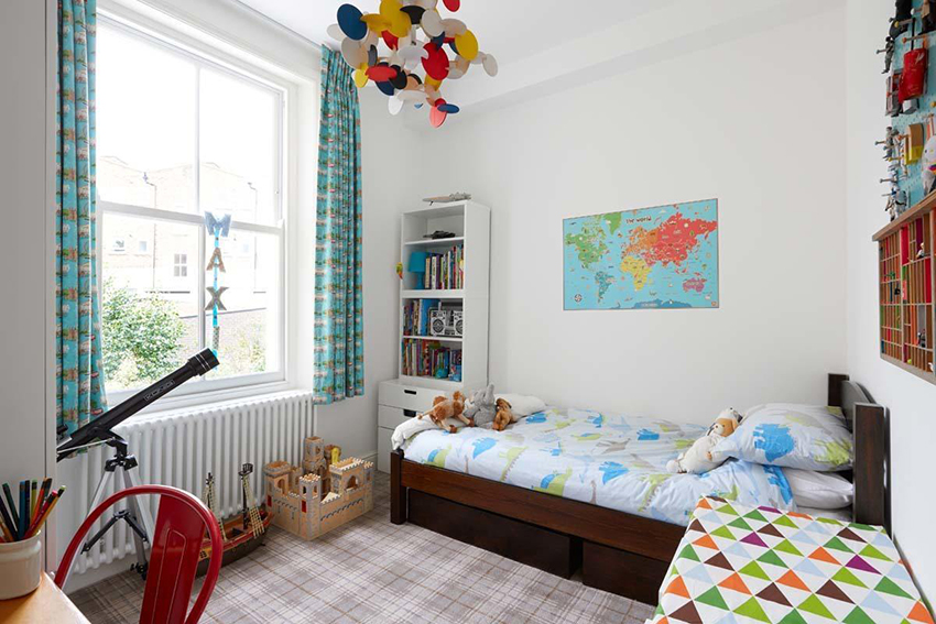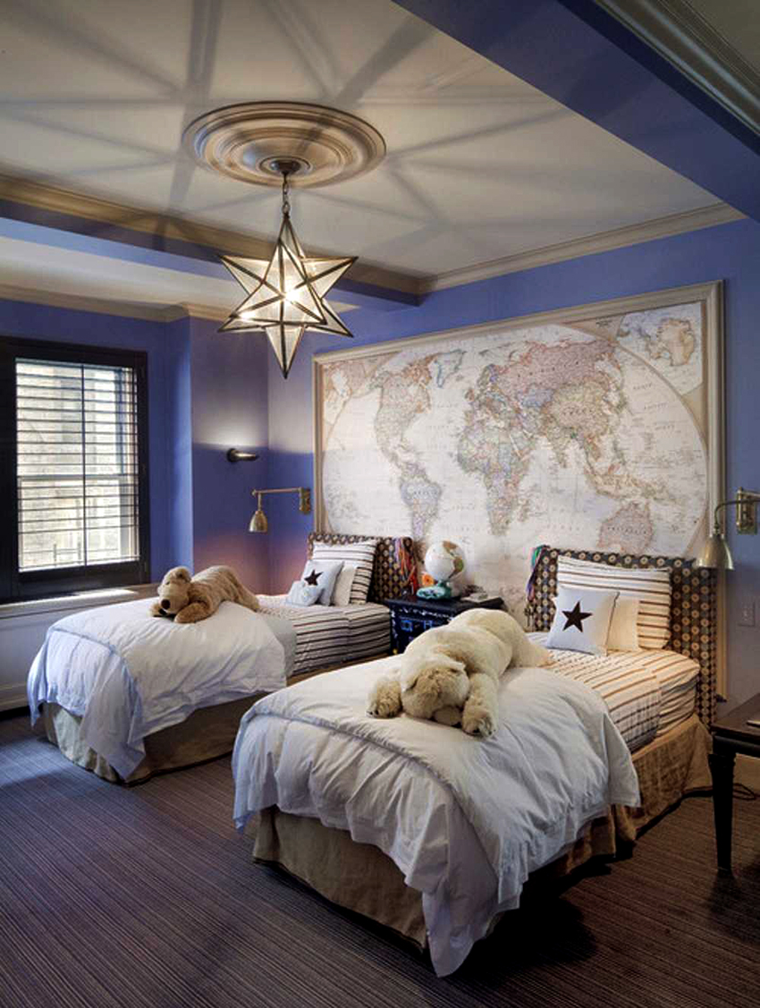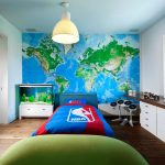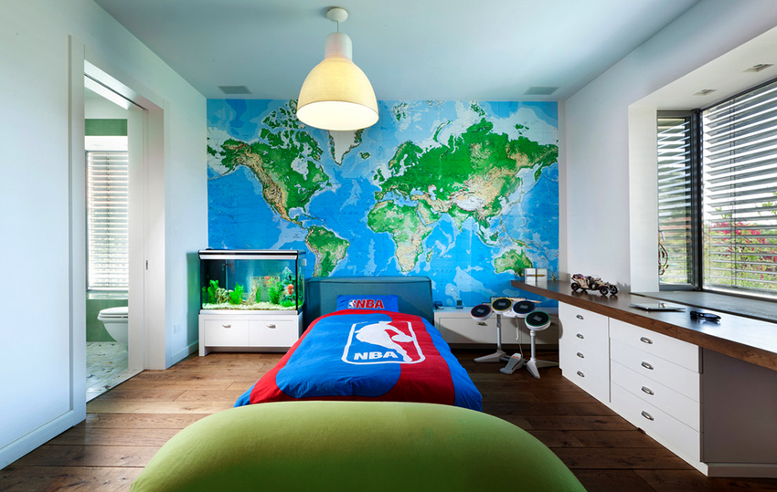 Aquest model d'aranya per a l'habitació d'un nen és adequat per a un nen i per a una nena, el més important és que el nen estigui a prop del tema d'aprendre el món, viatjant.