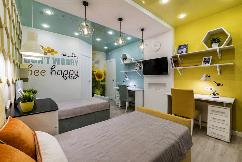 Es pot col·locar una aranya en una habitació infantil per a un adolescent a sobre de la zona on està instal·lat l’ordinador. És aquest mètode d’il·luminació el que crearà la llum difusa suau necessària per complir aquestes condicions. De vegades, l’aranya es penja al viver de l’entrada, il·luminant la zona lliure, la resta de la sala s’il·lumina amb altres tipus de làmpades. Aquest mètode d’il·luminació és adequat a les habitacions rectangulars, on la porta d’entrada es troba en una paret més petita.