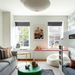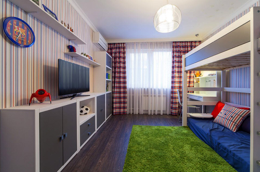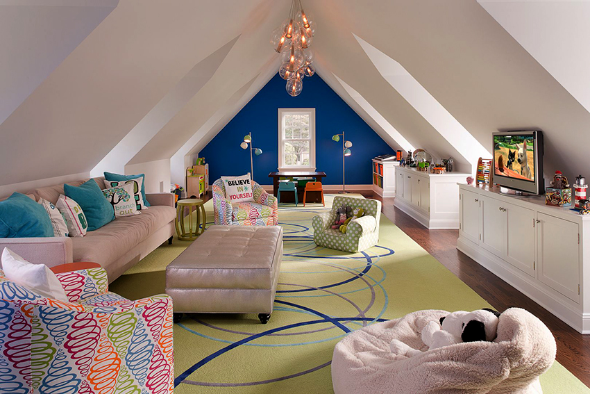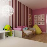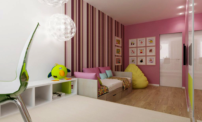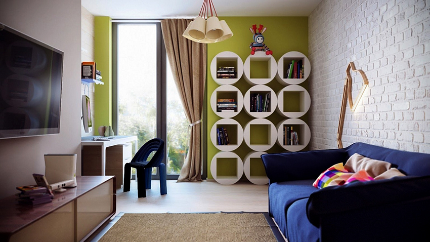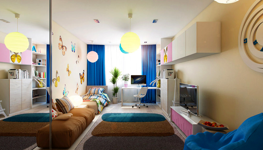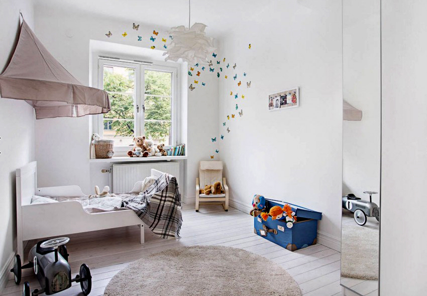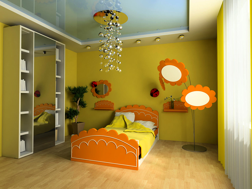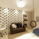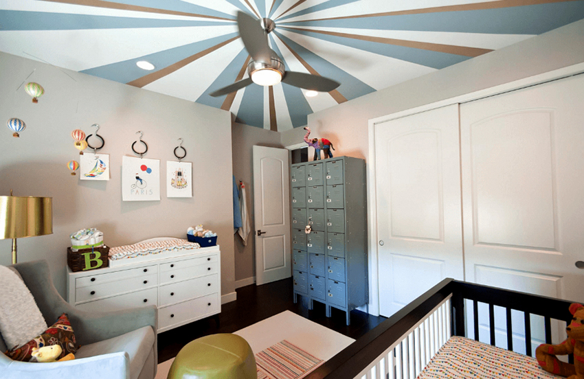 La planificació de molts edificis residencials no va tenir en compte inicialment la necessitat d’una habitació infantil. Per tant, sovint s’hi assignen habitacions aleatòries, les dimensions de les quals són bastant modestes. Amb sostres baixos, inferiors a 230 cm, molta gent prefereix no fer servir un llum d'aranya per il·luminar. Aquesta decisió és un error, ja que és el llum del sostre el que crea una sensació de volum i amplia visualment l’espai. Sense aranya, l’interior d’una sala d’estar pot semblar inacabat.