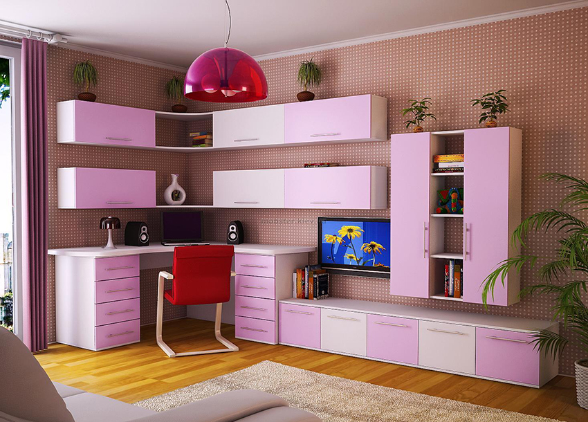 Materials per a la fabricació, opcions de disseny, mètodes de col·locació. Mobles incorporats. Bastidors, còmodes, prestatges. Disseny d’armaris per a xiquetes i xiquets.