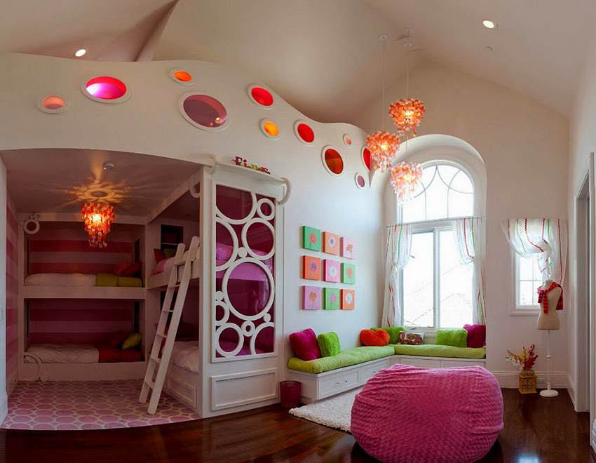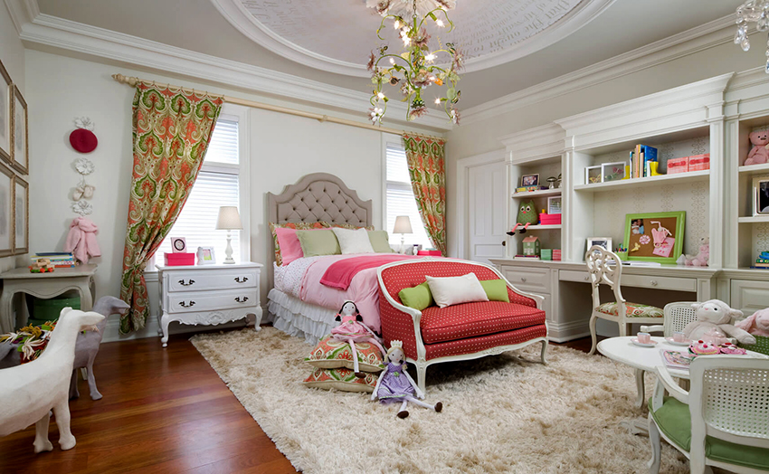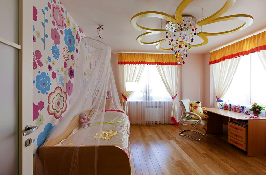 L’interior d’una habitació infantil per a nena és significativament diferent del disseny d’una habitació per a nens. Per tant, l’aranya s’ha d’escollir tenint en compte certes característiques. L’habitació clàssica per a una nena està decorada amb suaus colors pastís, els elements tenen línies suaus i suaus.