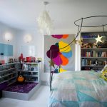 Un model tan creatiu com l’aranya de globus complementarà l’interior d’una manera interessant. Al viver de la nena, la pilota es pot decorar amb llaços, flors, cintes. L’opció per als nois s’hauria de limitar a les làmpades decoratives.