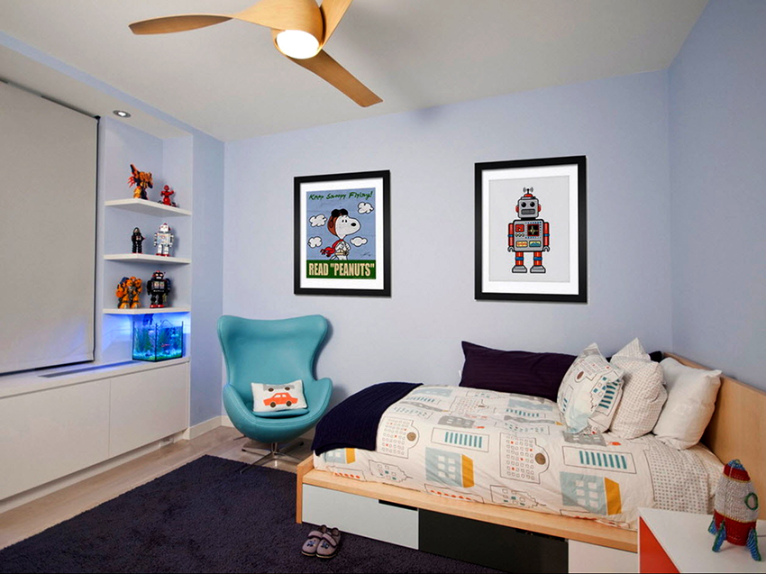 Per objectivitat, cal assenyalar que triar un llum d’aranya en una habitació per a un nen és molt més difícil que per a una nena. És difícil consultar els nois, no saben què els agradaria, però rebutjaran amb confiança allò que no els agrada. Un aranya per a un nen no es pot decorar amb elements bonics i qualsevol altra addició esdevindrà inorgànica i innecessària. Heu de triar un model acabat.