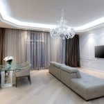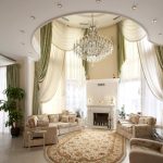 El saló és una sala que gravita cap a la celebració, la solemnitat, fins i tot si es fa en els estils de loft, minimalisme, alta tecnologia, etc., és a dir, en direccions d’estil on preval la racionalitat, les línies i els contorns restringits. En aquesta habitació cortines es pot convertir en un dels principals elements de disseny que creen una atmosfera de confort i hospitalitat.
