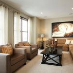 Per a una sala d’estar blanca, les cortines de color beix a l’interior són l’opció més exitosa, que no requereix suport de color per a altres elements de la sala.