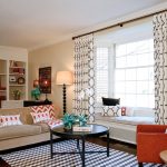 Les cortines són apropiades a les sales d’estar amb finestres amples i baixes. Si aquestes obertures estan decorades amb cortines llargues, cortinaran significativament la paret, cosa que donarà lloc a una sensació d’inutilitat, inadequació d’aquesta quantitat de tèxtils.