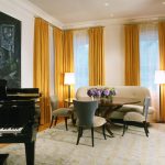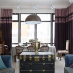 Les cortines del saló (les fotos ho demostren clarament) haurien de ser de tela transparent o translúcida. Un gran nombre de muntatges els farà més elegants, solemnes. Les vores inferiors no s’han de ressaltar amb cinta adhesiva ni amb altres ratlles que emfatitzin el contorn. És millor decorar les cortines a la part superior. No és adequat utilitzar teles de colors vius, és millor "dissoldre" el llenç amb llum natural.