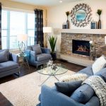 Gris poc profund, festuc pàl·lid i tons blaus blaus il·luminaran l’interior de les sales d’estar amb un blanc fresc.