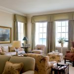 Quan es decora el disseny de les finestres de la sala d’estar amb cortines llargues, cal instal·lar la cornisa a una alçada de 300 cm com a mínim.