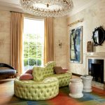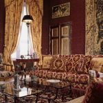 L’interior de la sala d’estar, decorat amb cortines de vellut, adquirirà una rica decoració moderada