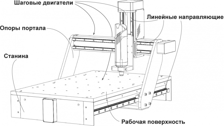 El llit es fa millor de metall mitjançant una màquina de soldar. En aquest cas, és molt important reduir la tensió de soldadura del material alliberant-lo. En cas contrari, l’alta velocitat de rotació de l’equip provocarà esquerdes. La taula pot ser pòrtic (per a productes plans) o creuada (per al processament a tres cares de peces a granel).