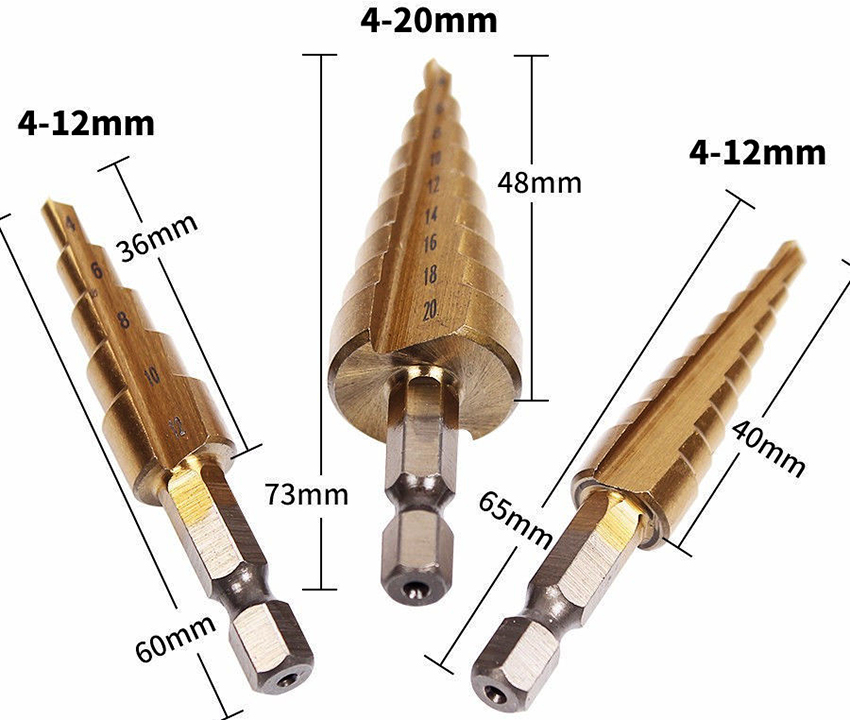 El diàmetre de la broca esglaonada pot variar de 4 a 38 mm