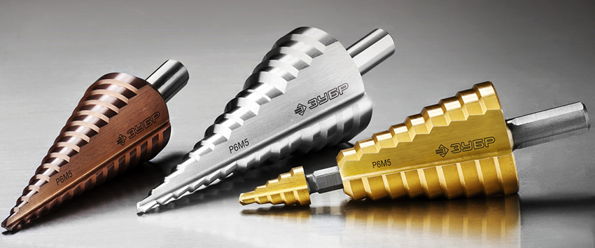 Els productes escalonats són molt eficaços quan es treballa amb alumini, acer, coure i altres xapes i canonades. Les eines d’aquest tipus tenen una forma de con que inclou 2 flautes. Faciliten la perforació de materials. Durant el funcionament, quan es passa al següent nivell, es forma un xamfrà per al forat que es crea amb el pas anterior.