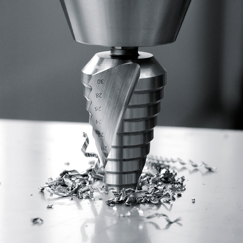Les característiques de disseny de l’eina escalonada permeten fer forats precisos amb vores llises. Per tant, quan s’utilitza un producte d’aquest tipus, no cal fer servir una polidora ni un arxiu.