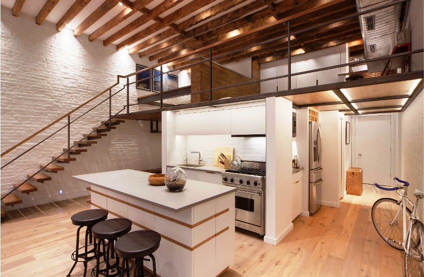 I també en aquest estil, és habitual utilitzar accents contrastats. Poden ser prestatges de qualsevol material adequat. Per exemple, es poden comprar prestatges negres per a una cuina lluminosa. És molt senzill ampliar visualment una habitació petita. Per a això, s’utilitza il·luminació per a armaris i prestatges.