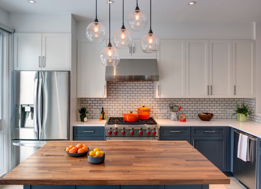 Les ombres suaus i clares són ideals per a espais reduïts. L’ús d’aquests mobles no sobrecarrega l’interior, cosa que suposa un avantatge en una habitació petita. A més, els mobles lleugers s’embruten amb menys facilitat i aquesta qualitat es considera molt important per a la cuina.