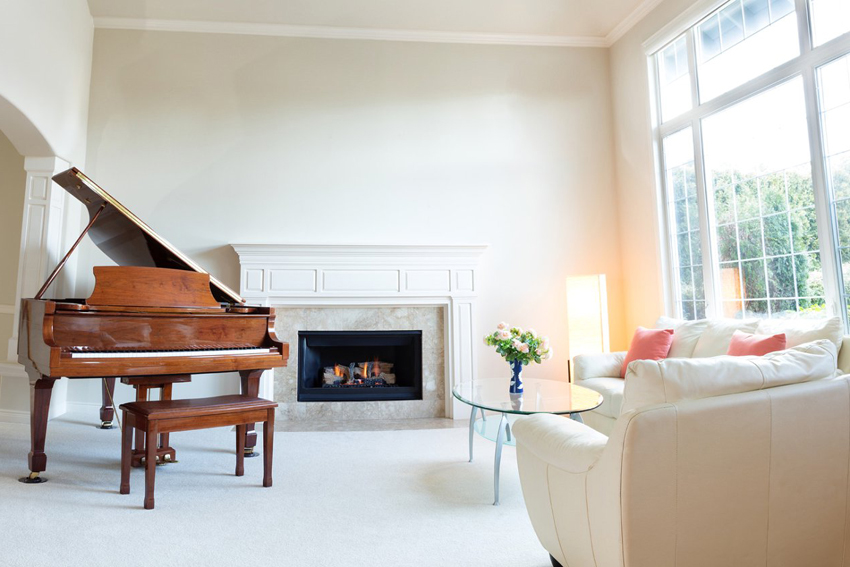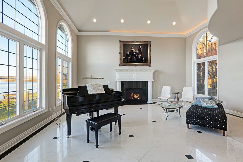Normalment, a la sala d’estar, el saló de música s’instal·la al costat de la finestra. En aquesta zona s’instal·la un sistema d’il·luminació independent: l’aranya de sostre crea un accent en aquesta part de la sala, les taques o els aplics es col·loquen a prop del piano o del piano. Amb cortines amb bonics cortinatges, podeu crear un ambient creatiu.
