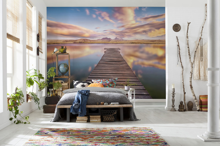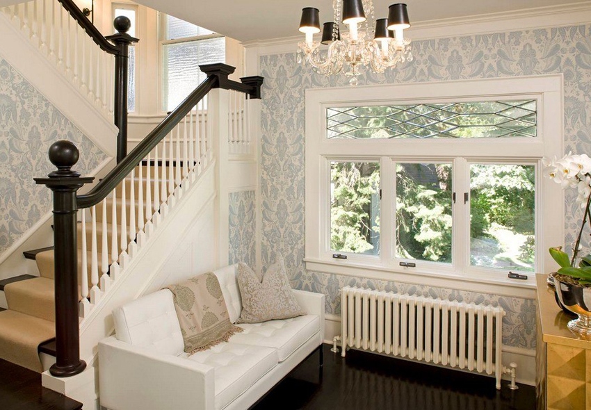 Disseny d'interiors d'una casa de camp: foto d'habitacions amb decoració de paper pintat