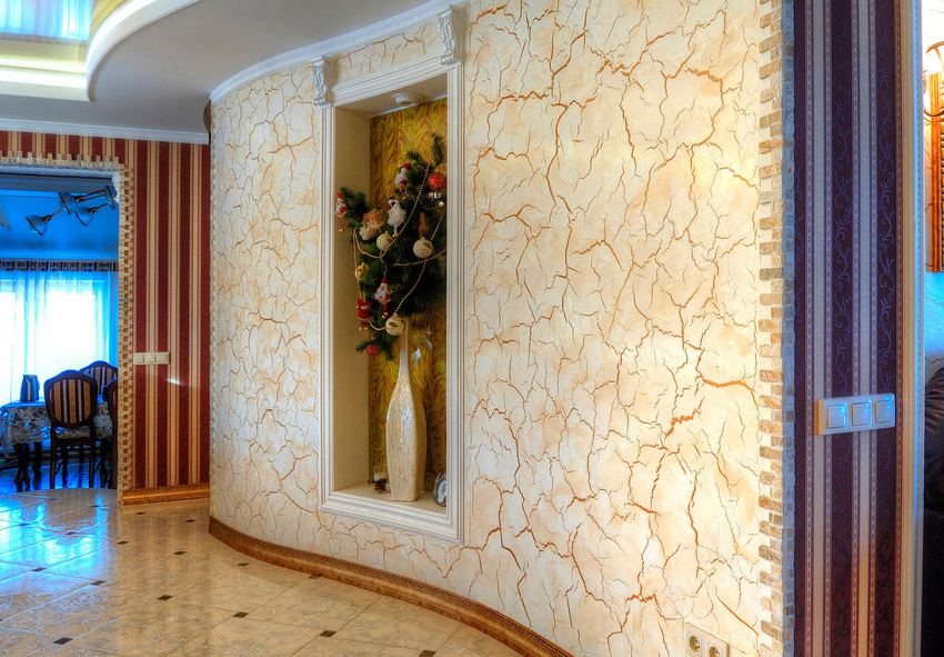 Per a una cuina o un passadís, és millor triar un guix amb efecte de marbre. Les mescles Flock que imiten el teixit són perfectes per crear un ambient acollidor i suau en un viver o dormitori. Al saló, el guix venecià amb efecte de resplendor intern quedarà perfecte.