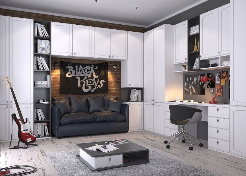 Normalment, l’habitació on viurà el noi es fa en tons neutres i freds. Si parlem de dissenyar una habitació petita per a un home jove, per no fer que l’habitació sigui visualment més petita, és millor no deixar-se portar amb tonalitats fosques. S’han d’utilitzar més elements d’il·luminació. Els colors més populars que s’utilitzen per decorar una habitació masculina són: