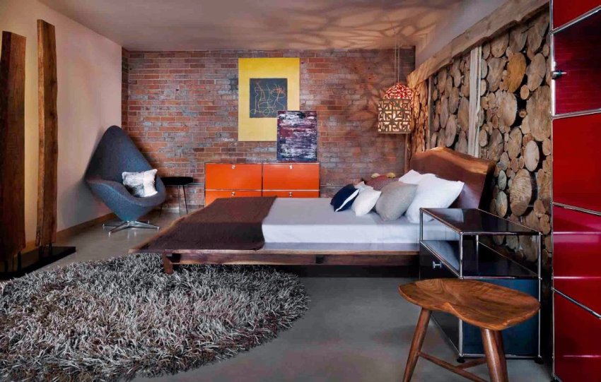 Quan es decora una habitació a l’estil loft, no s’ha d’oblidar dels accents brillants en forma de decoració de parets, roba de llit, cortines, coixins