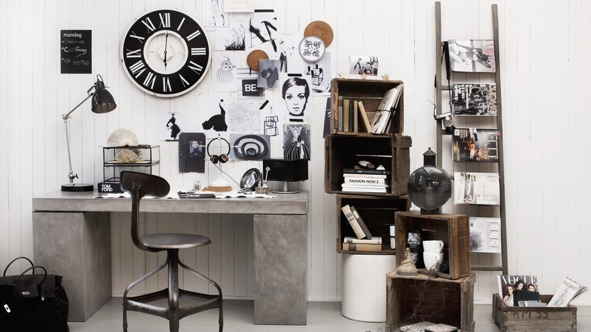 La zona de treball està dissenyada seguint totes les regles d’estil: aquí podeu fer una paret de maó i utilitzar accessoris de metall.