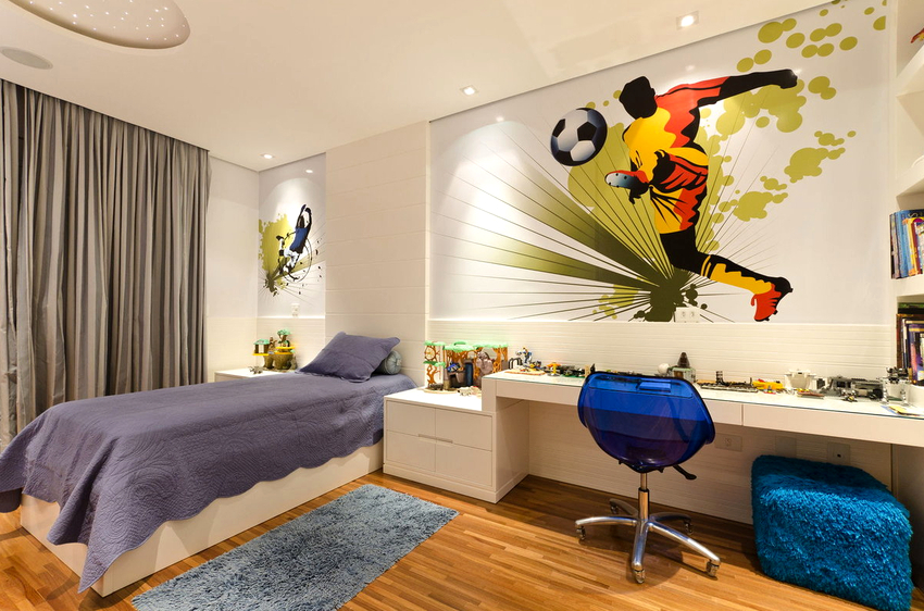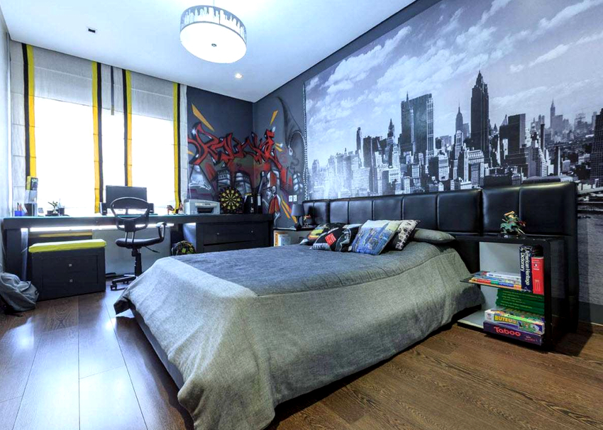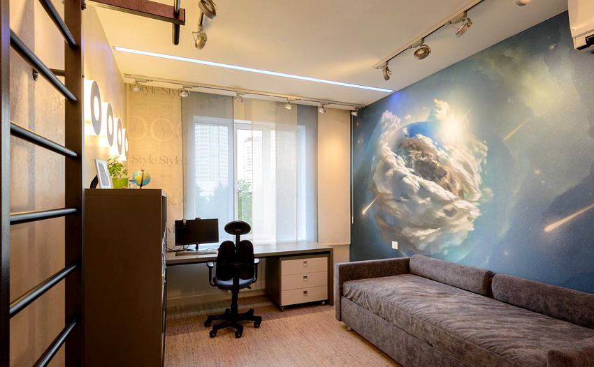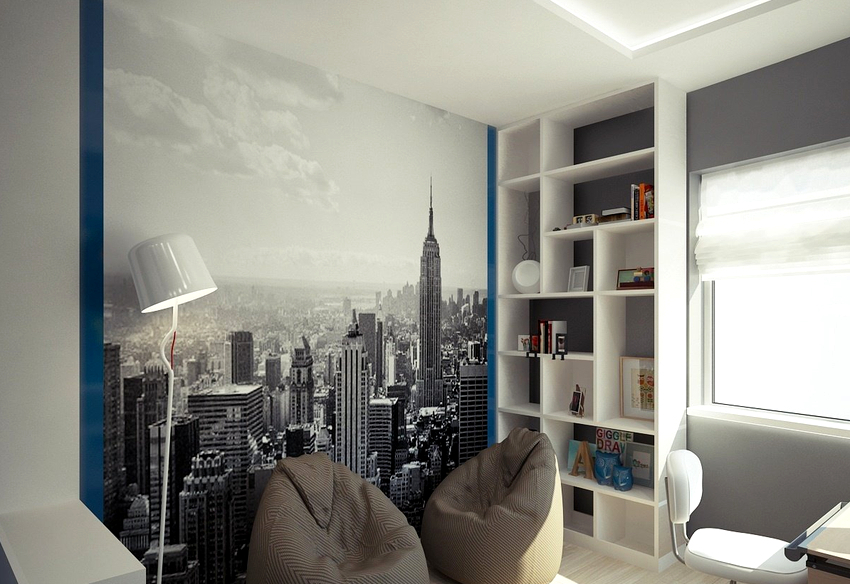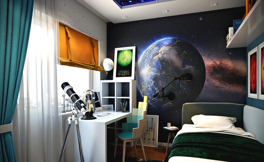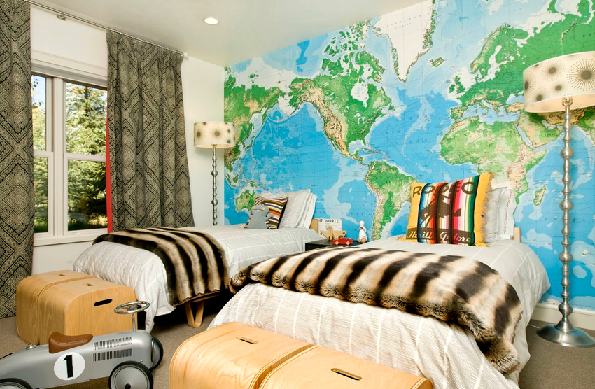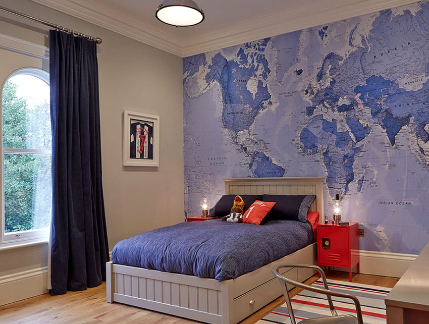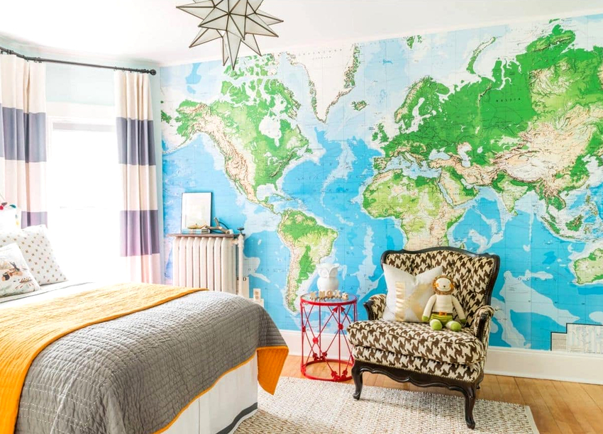Els murals a l'habitació d'un adolescent es consideren una manera fantàstica d'experimentar. Les pintures tridimensionals i les imatges realistes fan que la sala sembli inusual, interessant i individual, i això és exactament el que es requereix per a una persona gran. Molt sovint a aquesta edat, es dóna preferència al fons de pantalla amb trames, quadres abstractes o fotografies en blanc i negre. Els fotomurals del mapamundi per a nens adolescents continuen sent rellevants, perquè a aquesta edat cada vegada els atrau més viatjar i explorar nous llocs.