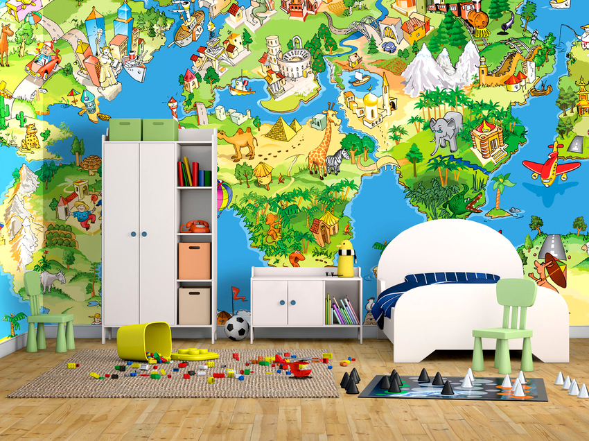 - Targetes. Els murals del mapa del món per a nens quedaran fantàstics a la paret, amb l’ajuda dels quals podreu triar els vostres països preferits i somiar amb visitar llocs bells. Les targetes utilitzen modernes (físiques o econòmiques), però també es veuen boniques en el paper pintat infantil amb l’efecte del pergamí a l’antiga.
