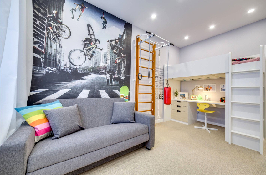 - Esport. Ara el tema és més rellevant que mai, perquè els nens moderns solen aficionar als aparells i no als èxits esportius. Si trieu fons de pantalla esportius per a una habitació infantil per a un noi que comença a mostrar interès per un determinat esport, pot desenvolupar una motivació addicional.