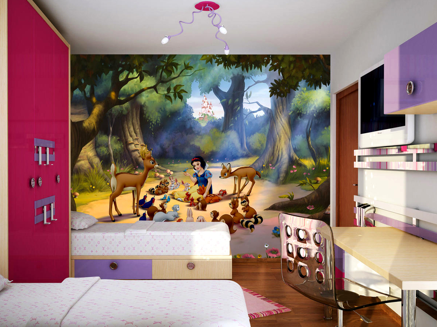 Si inculqueu l’amor per la lectura des de la infància, més endavant, serà més fàcil per a l’infant percebre informació. Tanmateix, fins i tot en aquest cas, no us heu de deixar portar i sobrecarregar els nens amb estudis. Per als nens que encara tenen dificultats per percebre informació educativa, els fotomurals de Disney amb personatges brillants i colorits dels seus dibuixos animats preferits són més adequats.