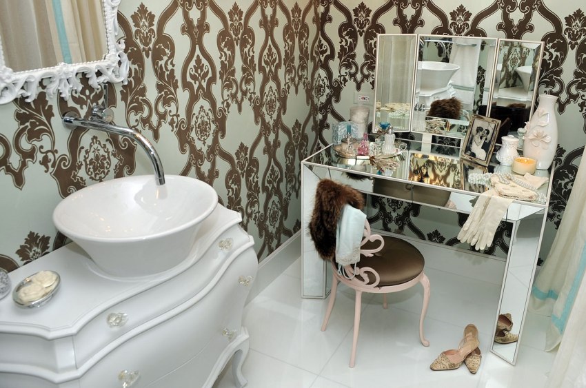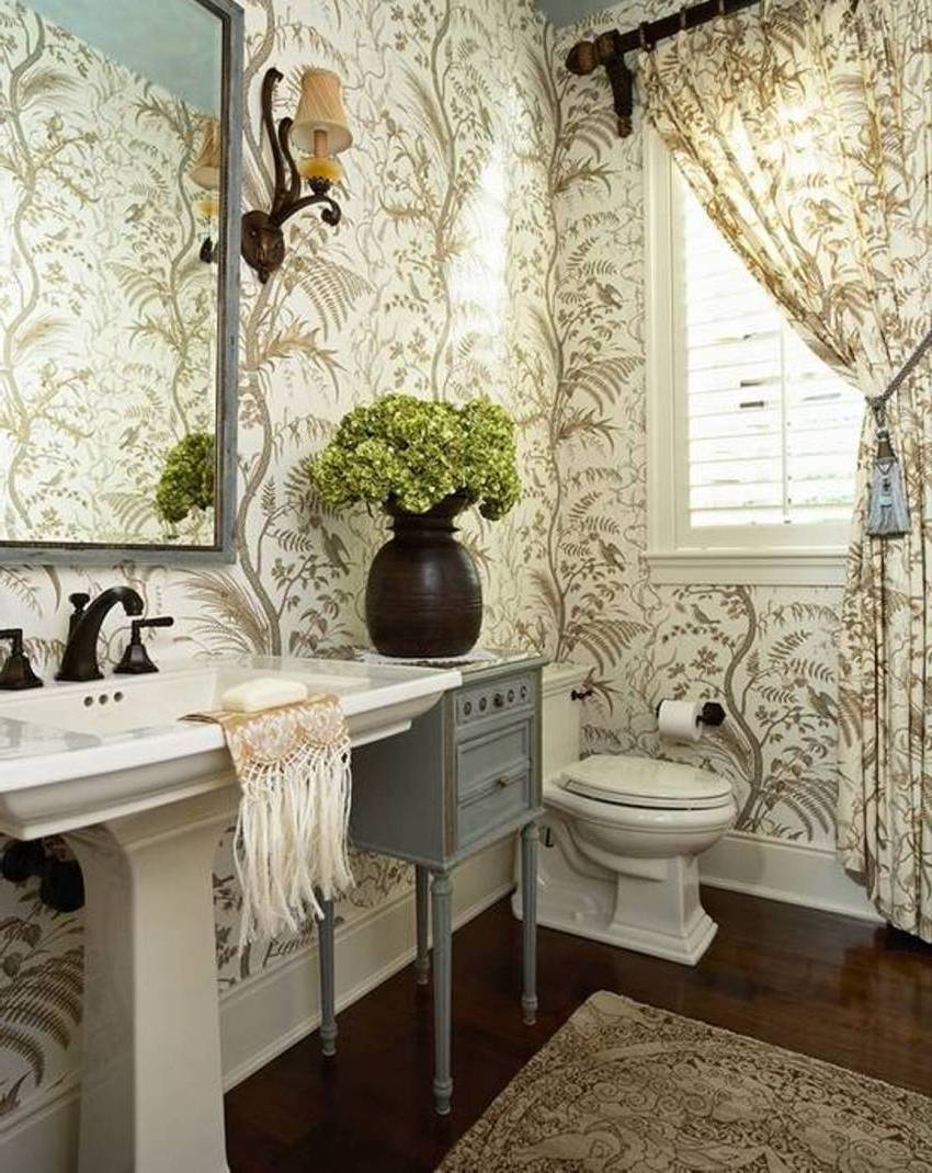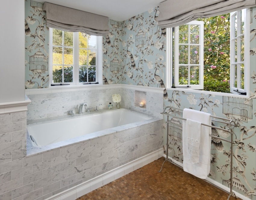 En triar un revestiment per a un bany, primer de tot, s’ha de guiar pel microclima especial de l’habitació. El paper pintat es caracteritza per l’aparició de butllofes i taques sota la influència del vapor d’aigua sobre una base de paper, que posteriorment provocarà l’aparició de fongs i floridures a les parets. Per tant, el paper pintat s’ha de triar exclusivament impermeable.