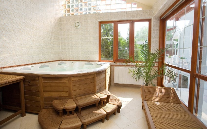 La sala té un aspecte elegant i estètic, decorada en colors clars amb beix, lletós, marfil, que ampliarà les dimensions d’una habitació petita respirant-hi aire. Però perquè el bany no sembli avorrit, els detalls brillants en forma de diversos ornaments, patrons i imatges haurien d’estar presents a la decoració de la paret. Els murals sobre diversos temes semblen interessants sobre un fons clar al bany.