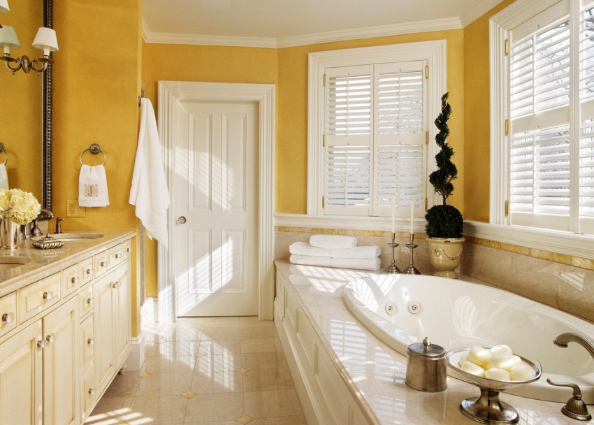 Per donar naturalitat a l’habitació i la naturalitat permetrà un paper pintat verd al bany. Les fotos mostren clarament els diferents acabats en una paleta tranquil·la i tranquil·la. Els tons de groc brillants, sucosos i assolellats, que dominaran la decoració del bany, us ajudaran a recarregar-vos amb bon estat d’ànim. Les fotos de les habitacions decorades amb un estil clàssic i rústic mostren com d’ambient viu i natural pot ser una habitació tancada.