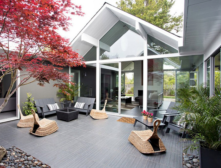 Stort udvalg af farver og teksturer. Kunstig rotting kan fuldstændig efterligne sin naturlige modstykke. Præsenteret med den bredeste palette af nuancer og farver. Det kombinerer perfekt med en lang række materialer, hvad enten det er sten, glas, keramik, aluminium eller stål, takket være hvilket det passer perfekt ind i ethvert rumdesign.