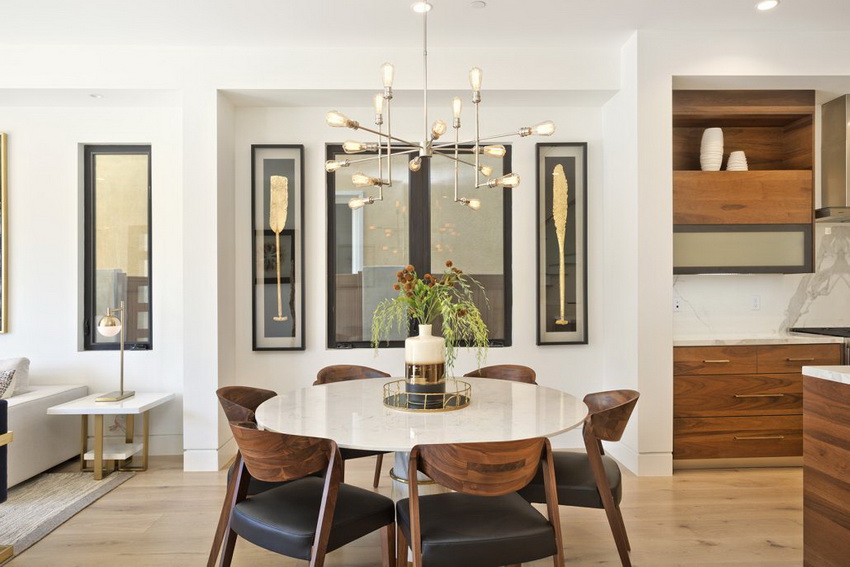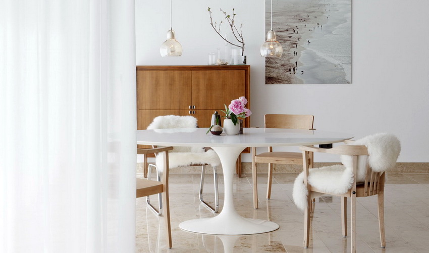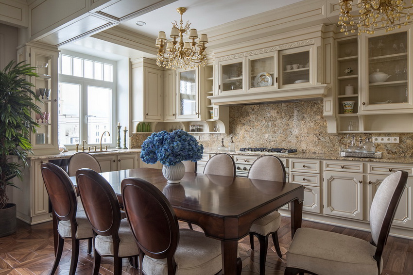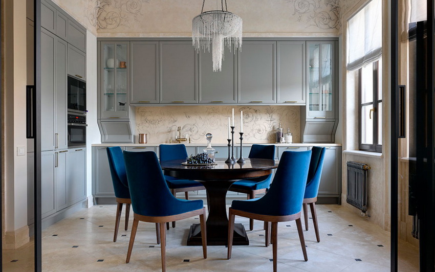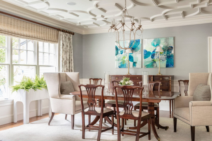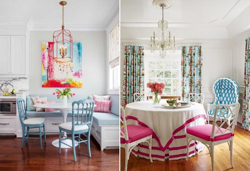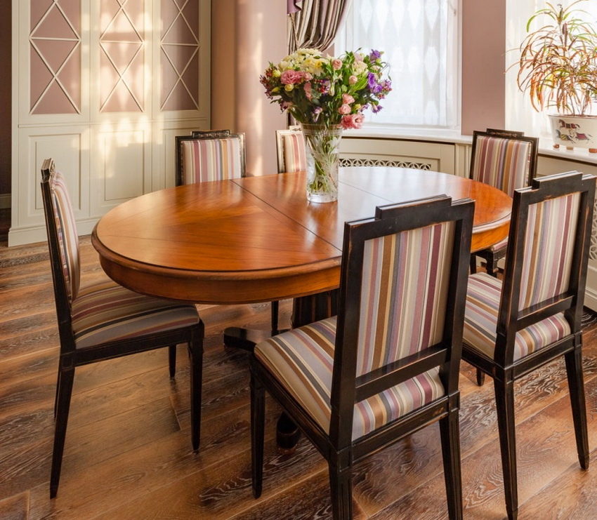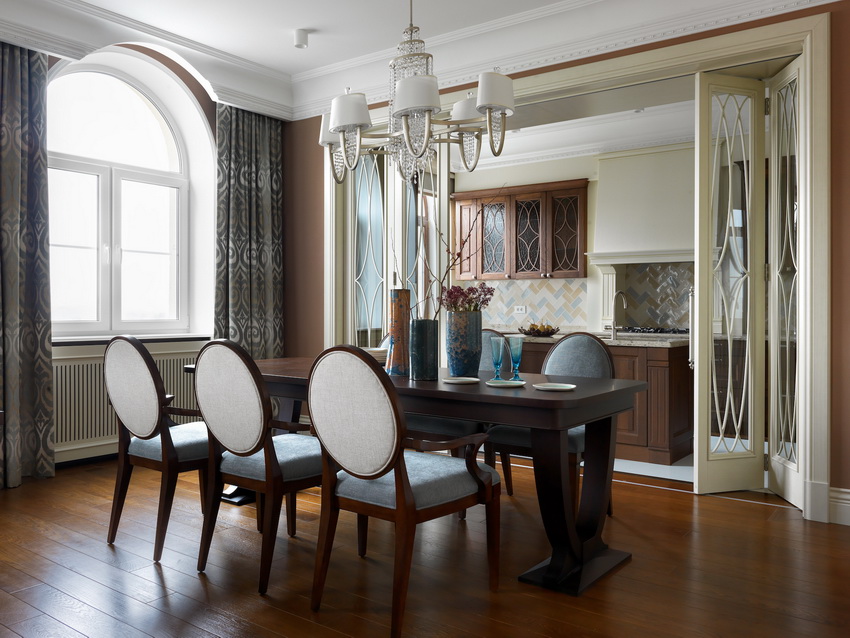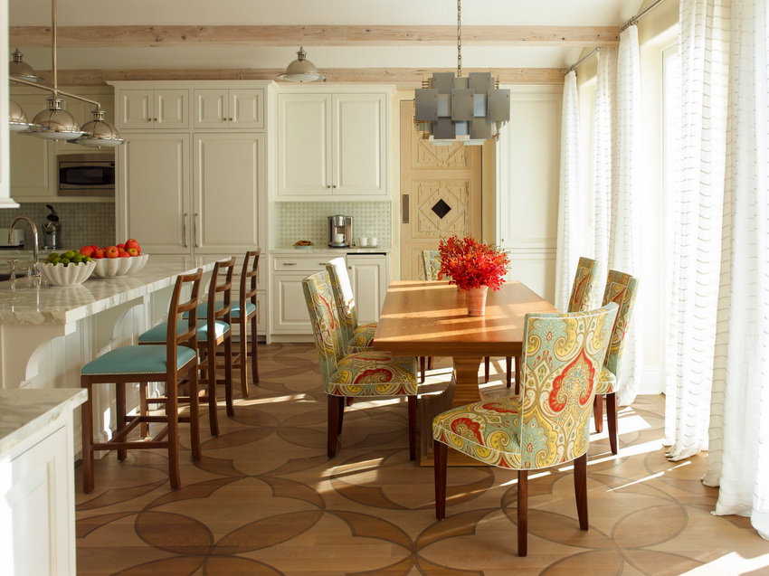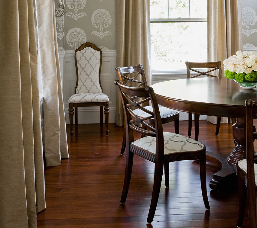 Træfarven er ikke vigtig, hvis stolene skal installeres i spisepladsen ved hjælp af dybe dæksler, der fuldstændigt dækker hele produktets ramme. På denne måde kan du med held skjule små mangler i behandlingen eller kvaliteten af det valgte træ. Imidlertid involverer ikke alt interiør installation af stole med betræk, uanset hvor praktisk de er.