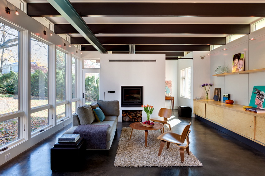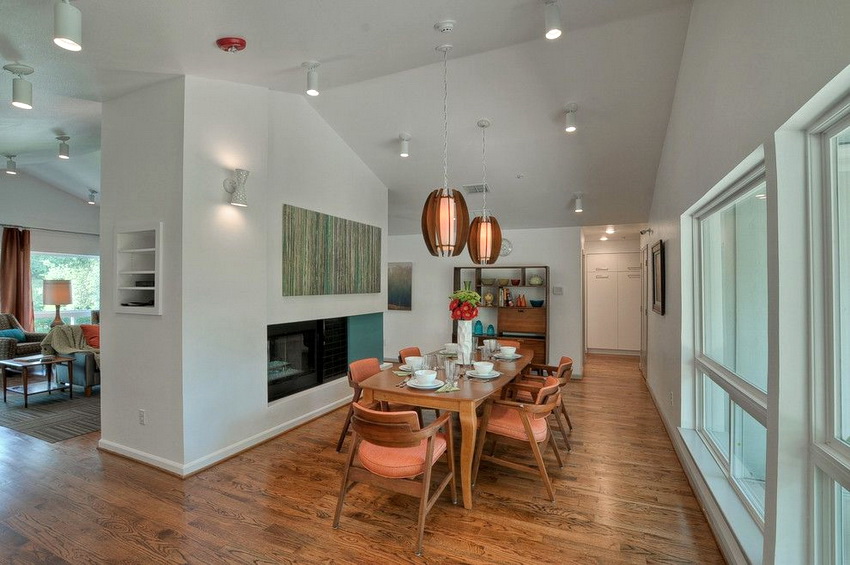 Pejs i stuen interiør: fotos af modeller i forskellige stilarter