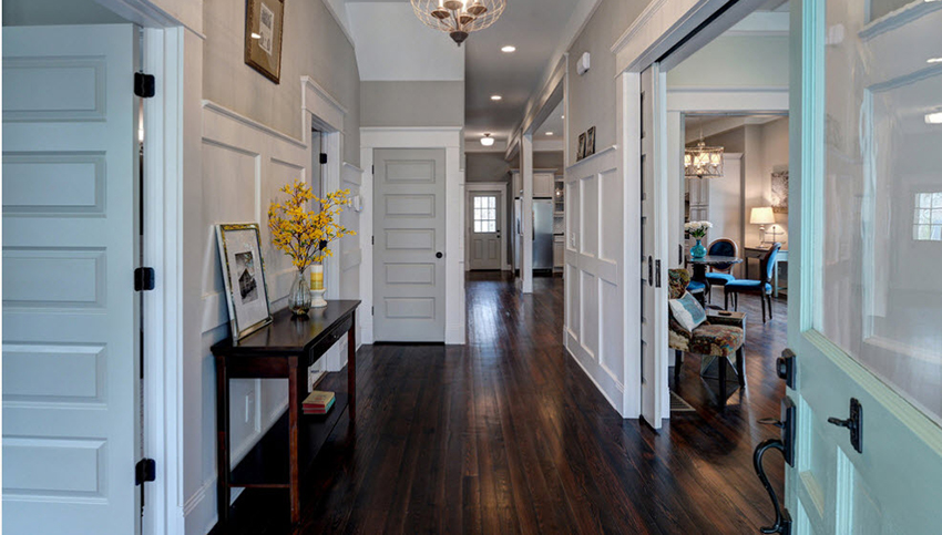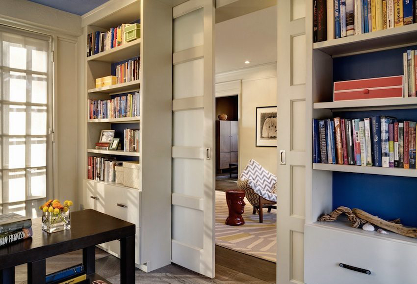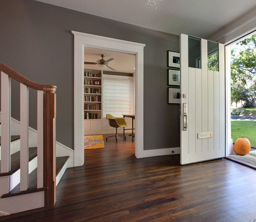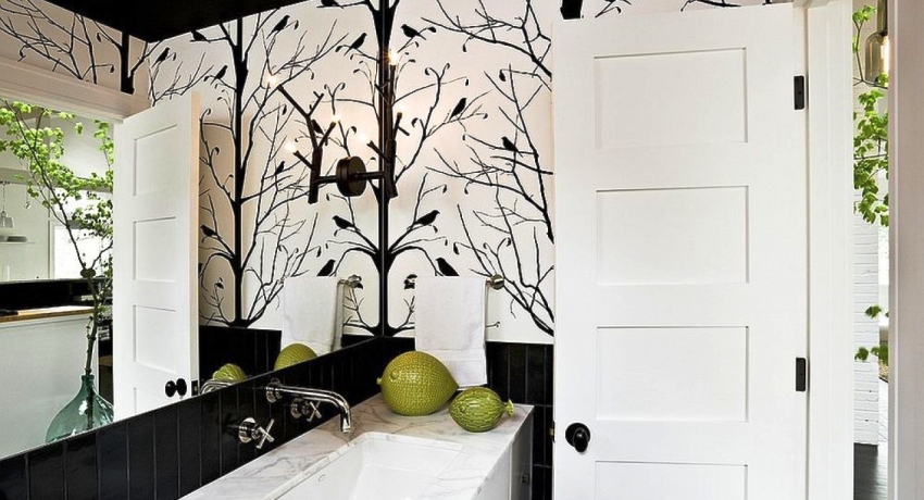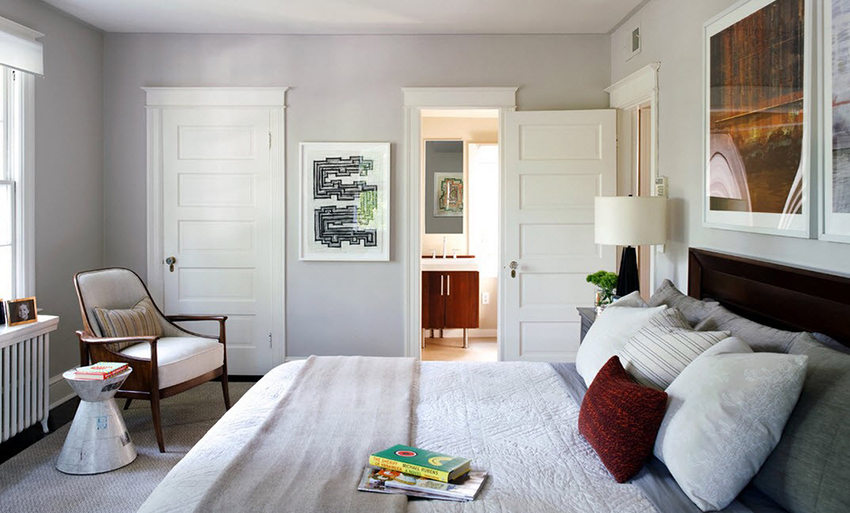 Hvis der vælges mørke nuancer for at dekorere rummet, skal der tilføjes en yderligere detalje til rummet, der understøtter farven på dørkonstruktionen.