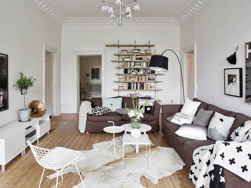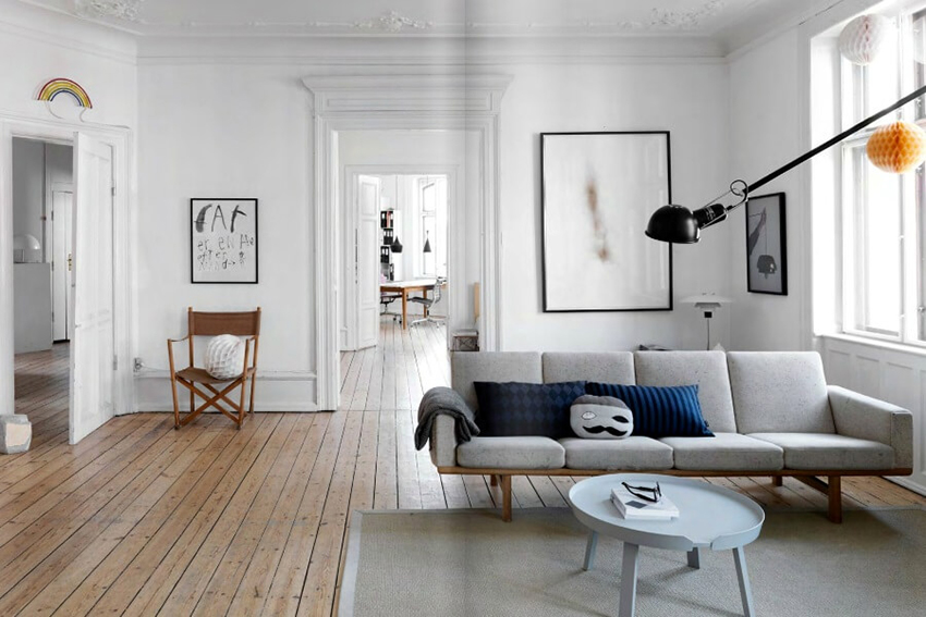 Brugen af klassiske hvide døre er også typisk for den skandinaviske stil. Disse interiører er baseret på lyse farver og lys belysning. I betragtning af denne situation kan vi sige, at tilstedeværelsen af hvide lærred ikke bare er ønskeligt, men nødvendigt. En sådan løsning er ideel til de tilfælde, hvor det er nødvendigt at opnå en visuel udvidelse af rummet.
